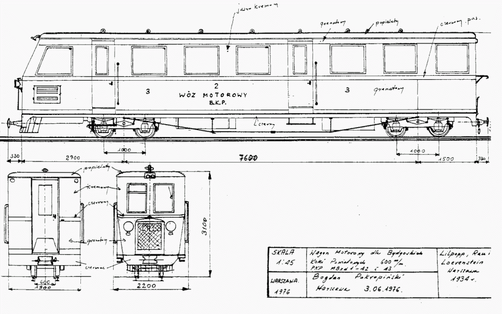 Jednou ze společností, realizujících na své síti provoz motorových vozů, se stala Bromberk Kleinbahnen, pozdější Bydgoskie Koleje Powiatowe. Zdejší síť o rozchodu 600 mm vycházela z Bydgoszcze a provoz na ní byl zahájen v roce 1895 – tratě byly vedene rovinatým, agrárním krajem a obsluhovaly řadu větších či menších zemědělských a průmyslových podniků. Pro zkvalitnění a zhospodárnění osobní dopravy se tak dráha rozhodla na začátku třicátých let k objednání prvního motorového vozu u německé firmy HAWA – ten však nakonec nebyl společností BKB odebrán. Teprve až v roce 1932 došlo k objednávce u varšavské firmy Lilpop, Rau und Loewenstein, jejímž předmětem byla výroba motorového vozu, dodaného v témže roce a označeného u BKB číslem 1. Jednalo se o obojsměrný čtyřnápravový vůz, poháněný dvěma motory Ford V8 o celkovém výkonu 45 koní.